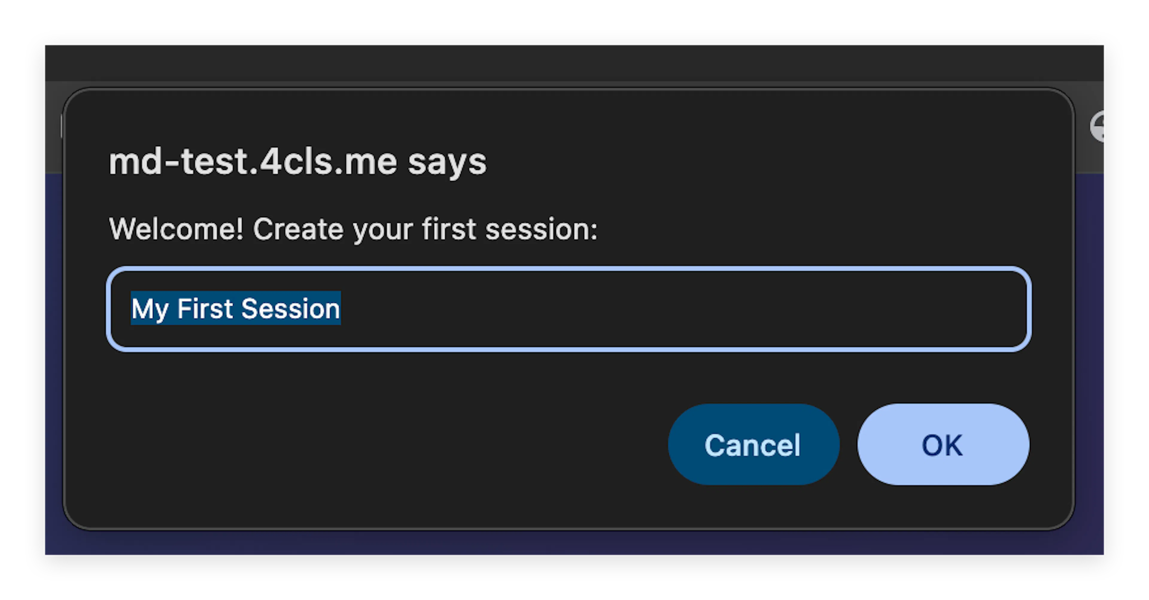 Step 2: Creating Your First Session Immediately after your first successful login, the system will ask you to create your first session, offering the default name "My First Session". You can accept this or type in a different name.