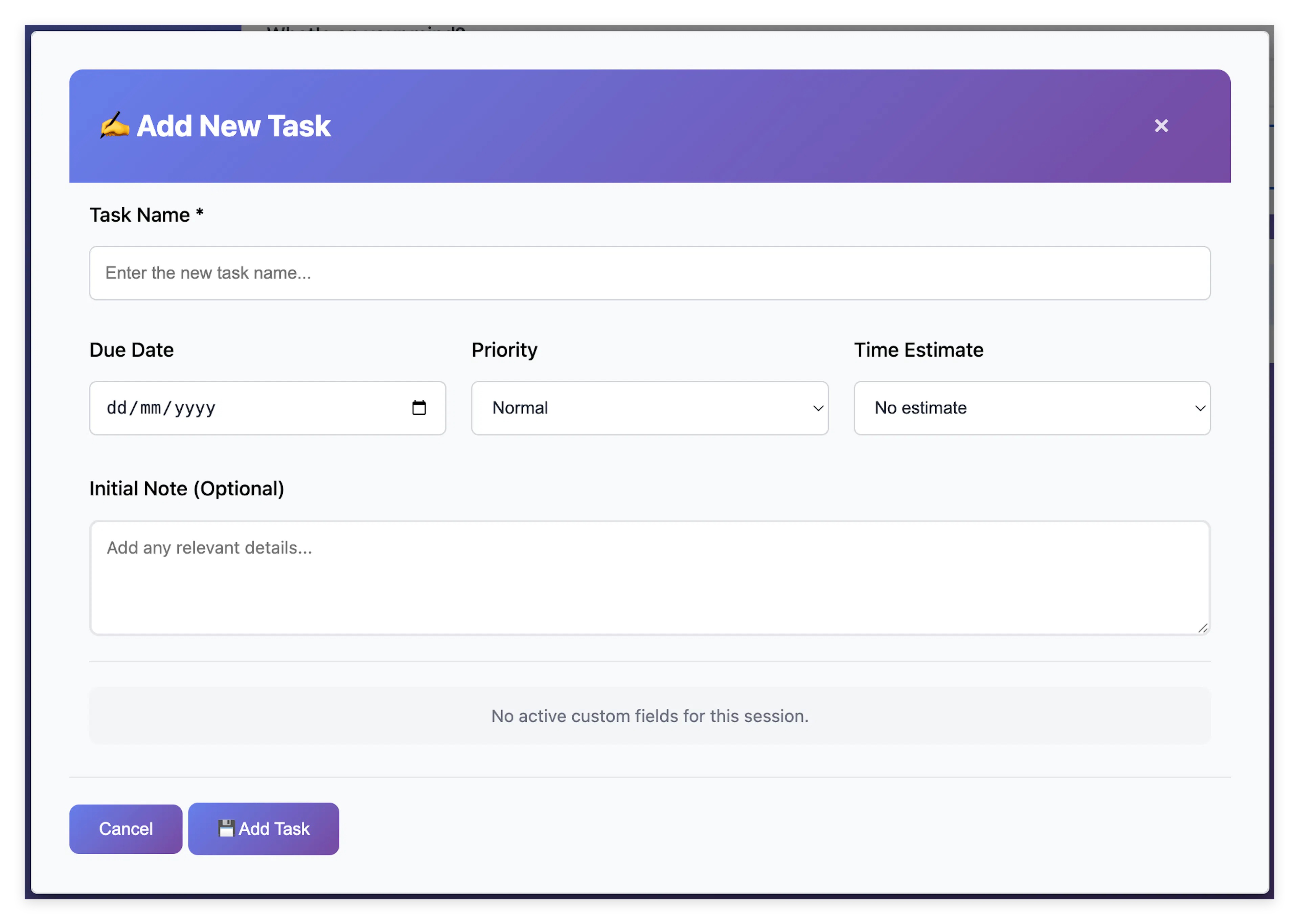 Initial Note (Optional): A larger text area where you can add any extra details, instructions, or expanded thoughts related to the task right from the start.